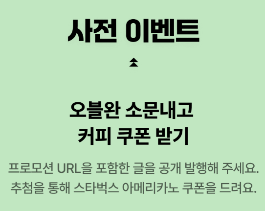 오블완 소문내고 커피 쿠폰 받기 -> 프로모션 URL을 포함한 글을 공개 발행해 주세요. 추천을 통해 스타벅스 아메리카노 쿠폰을 드려요.