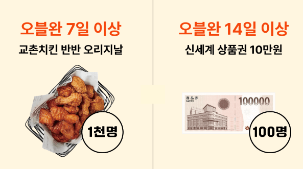 오블완 7일 이상-교촌치킨 반반 오리지날(1천명)