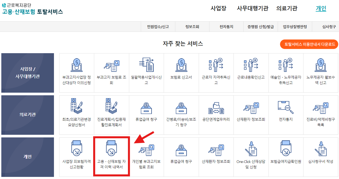✅ 고용 산재보험 토탈서비스 접속 로그인 개인 사업장 피보험자격 신고 현황