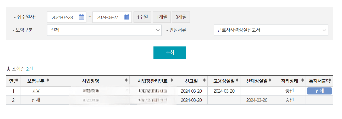✅ 고용24 사이트 접속 > 로그인 > 개인서비스 > 조회 > 이직확인서 처리 여부 조회