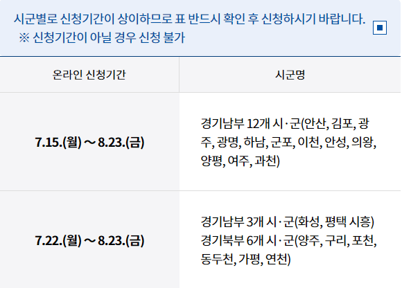 [참여 시·군] 화성, 안산, 평택, 시흥, 김포, 광주, 광명, 하남, 군포, 이천, 안성, 의왕, 양평, 여주, 과천, 양주, 구리, 포천, 동두천, 가평, 연천